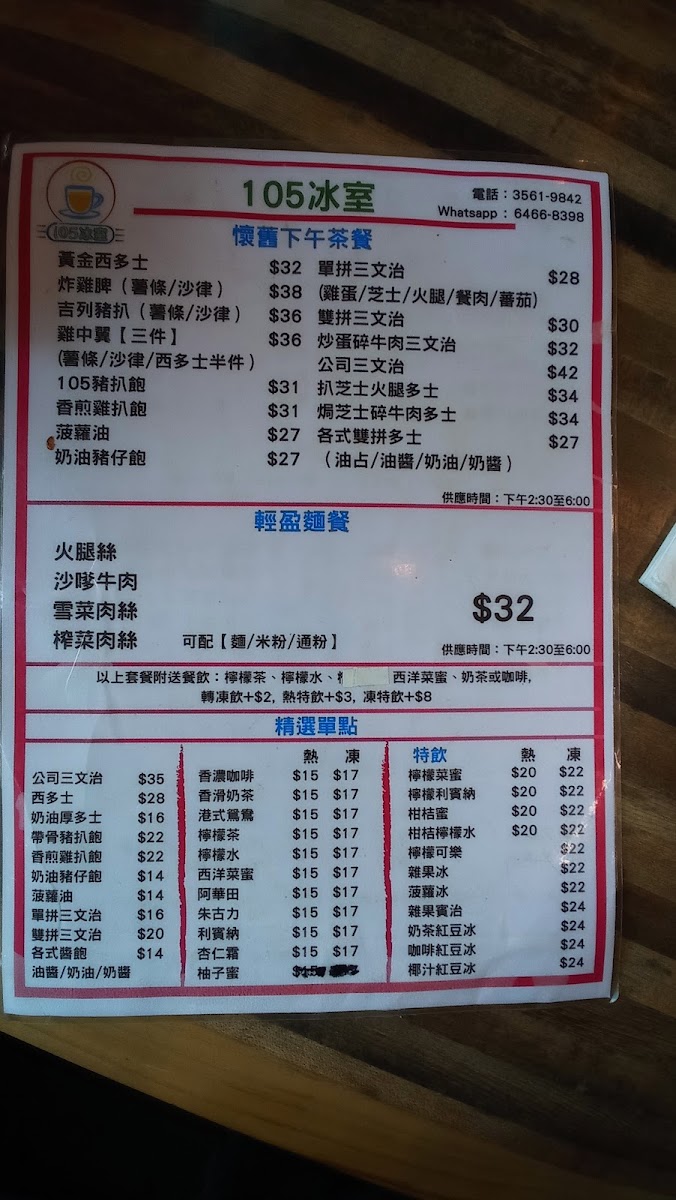 Welcome to 105 Cafe, a delightful cha chaan teng nestled in Kai Po, Tai Po. This cozy eatery offers a charming ambiance with large windows that provide a lovely view of the playground, making it perfect for families and cyclists seeking a quick bite after a ride.